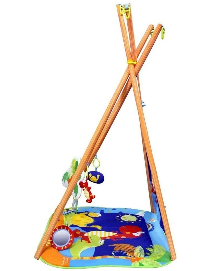 The Infant-to-Toddler Grace Baby Dinosaur Century Play Gym & Fun Teepee is a multi-functional gym that grows with your little one, transforming from an infant gym to a pretend play teepee.