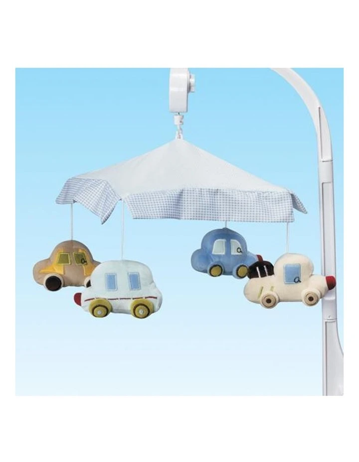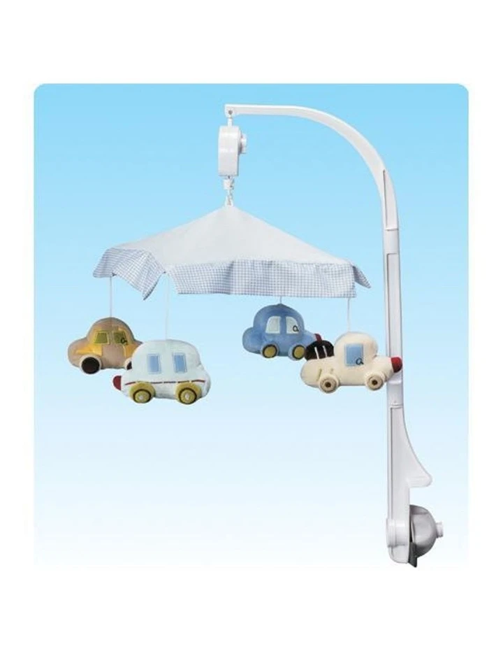Decorate baby’s nursery with this colourful musical mobile designed to develop eye tracking and sound perception skills. This Musical Cot Mobile plays a gentle melody to calm baby, while four adorable plush characters fly around stimulating baby’s senses. The mobile frame is made from a quality strong plastic and attaches to the side rail of the cot. Easy to attach with vibrant colours, this Cot Mobile is an essential product for baby and nursery.