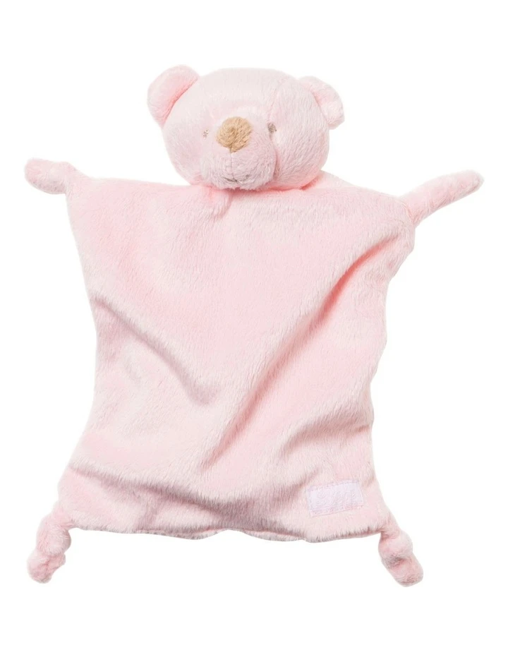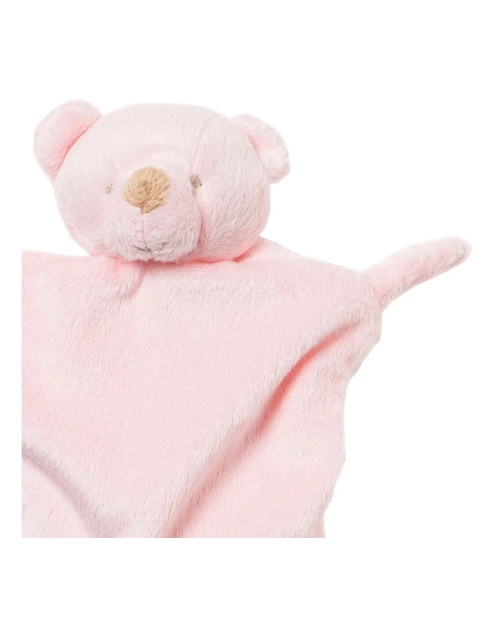 This adorable teddy comforter is crafted from soft plush fabric and features a teddy bear head and knot trims on the arms and legs.