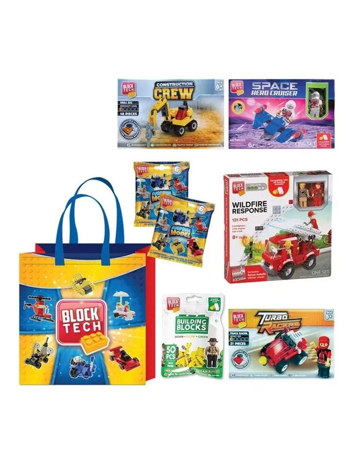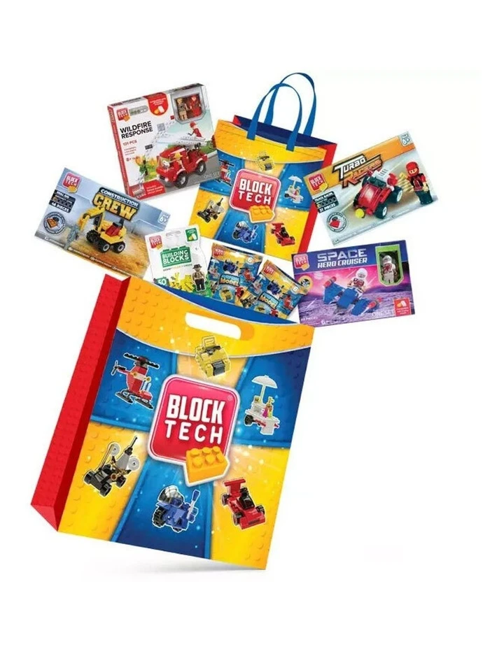 Youre only limited by your imagination with Block Tech! Building with blocks helps to develop hand-eye coordination and develop confidence as well as encourage imaginative play. Youll find it all in the Block Tech Showbag.