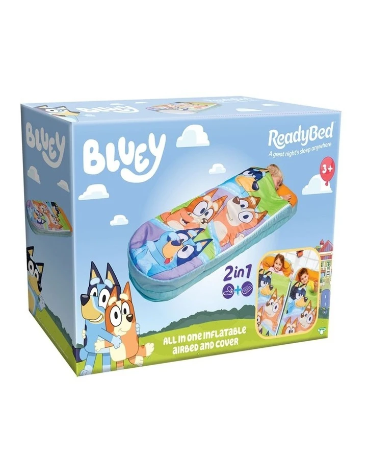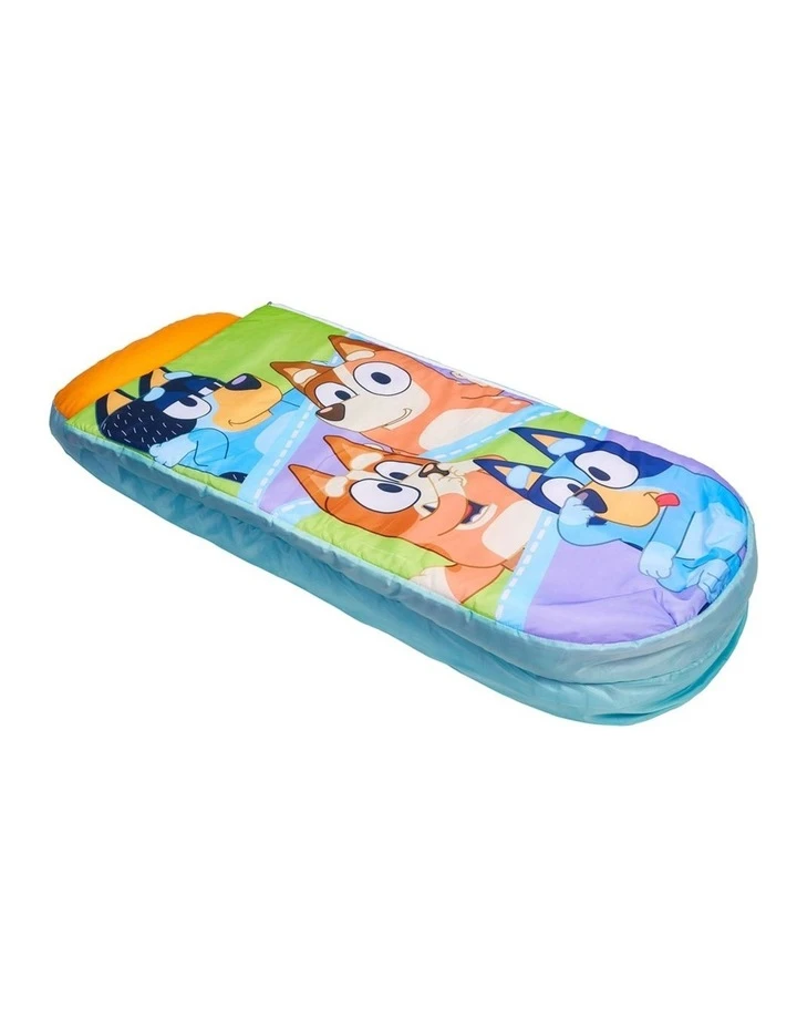 This Bluey Junior Ready Bed is a portable all in one childrens airbed and sleeping bag. From bag to bed in minutes, pop it open, pump it up and tuck your little one in. With a machine washable cover, handy carry bag and easy to use pump its the perfect all in one sleepover solution.