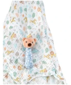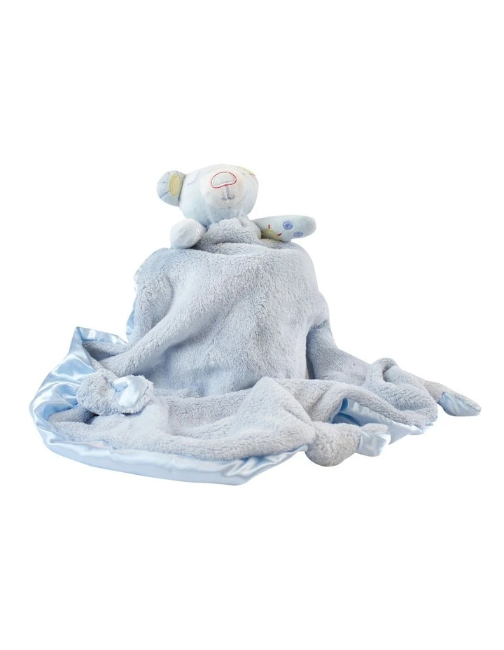 Huggable and soft, the sleeping Lemon Giraffe, Blue Bear and Pink Bunny are attached to a blanket body with knotted corners for easy grip and a smooth satin lining giving a gorgeous and soft texture to soothe and comfort.