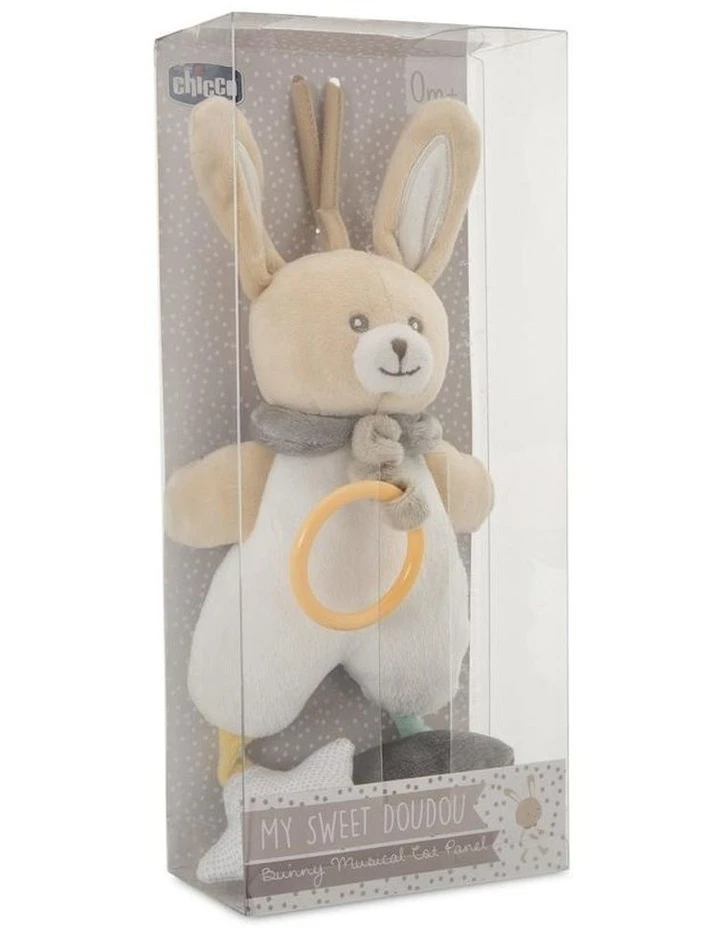 The Bunny cot panel from the My Sweet Doudou range entertains and relaxes little ones, with its sweet melody and two hanging toys with mirror and crackle effect. Soft velour fabric Handy ties for attaching to crib Sweet melody (It’s a small world) 2 hanging toys with mirror and crackle activities