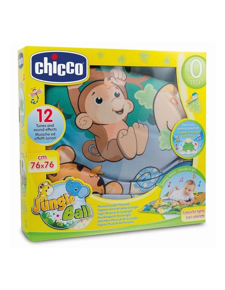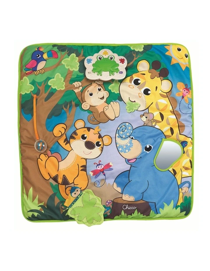 The Chicco Musical Jungle Playmat is electronic and has manual activities for endless fun with some of the most famous jungle characters: the tiger, the monkey, the elephant and the giraffe! Additional features A snail toy allows a pick-a-boo game with tree leaves