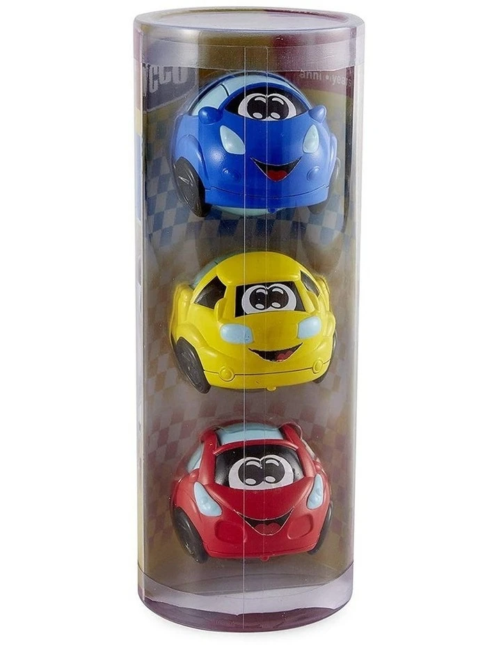 Slide the vehicle and see how it rolls, thanks to the integrated ball. 3 types of vehicles: truck, racing car and coupe.