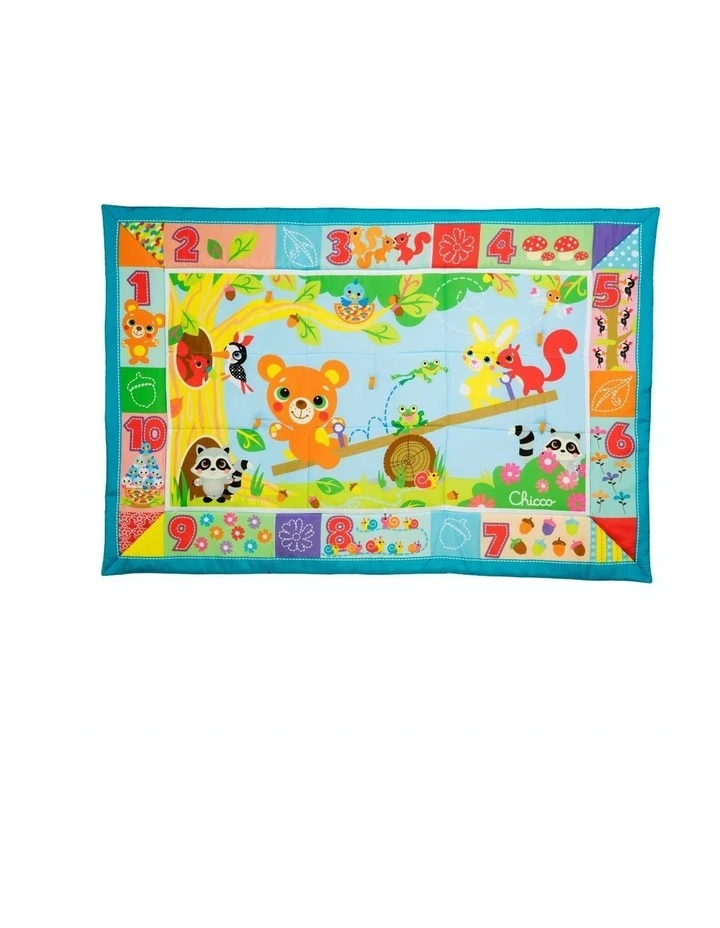 A soft and colourful extra-large play may: 135 x 90 cm of space for your little one to play on! Thanks to the two strings, the mat is easy to close and store away. The cute forest animals will stimulate baby’s curiosity and encourage interaction. Numbers up to ten are on the border of your little ones play-mat to encourage counting.