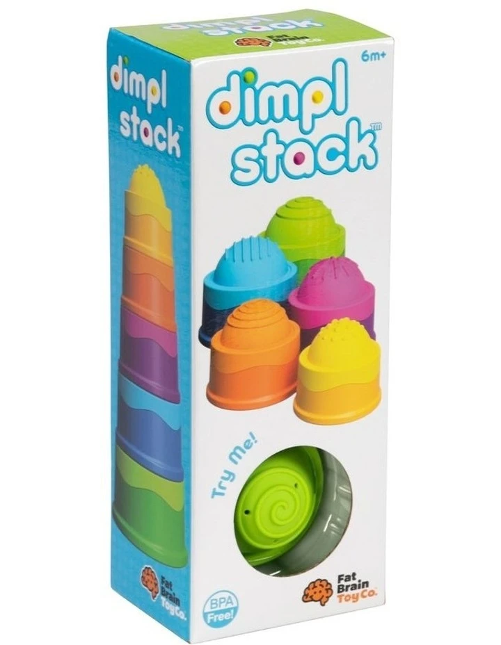Little fingers will love to touch, push, and pop them again and again. Meanwhile, its unique stackability engages curious and growing minds while providing the hours of fun parents have come to expect from the entire line of Dimpl toys.