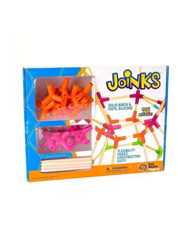 The curious building has found its match. The innovative building has arrived! One look at the colorful pieces and hands start grabbing. Joinks connectors reach out in all directions – one, two, three, four, and even FIVE prong connecting pieces conform creativity to your definition.
