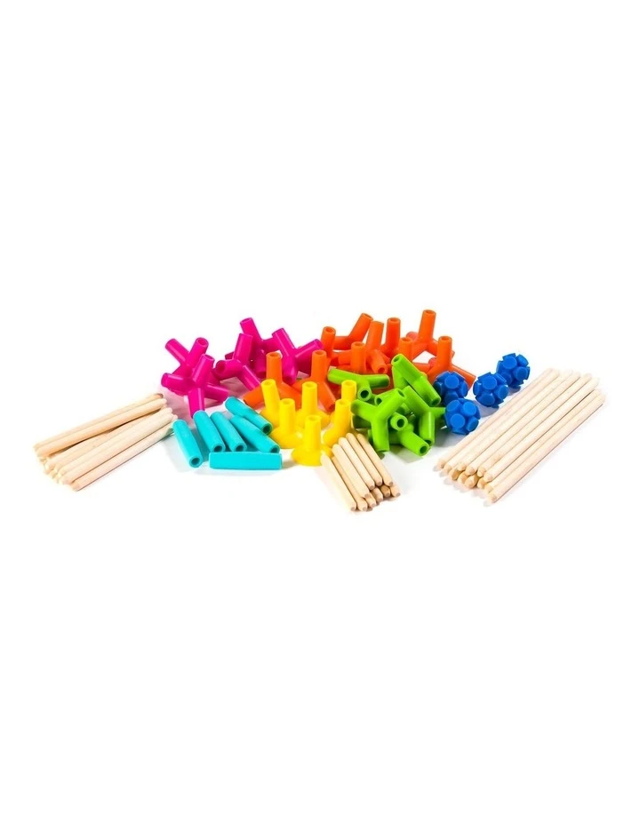 Connecting prongs bend and flex for customized construction. Silly creatures, expressive forms, 3D geometric shapes, chemistry, and molecular models, irregular structures… easily add, remove or swap sticks. Bend them into place, Joinks are eager to please and flex quickly to your every whim.