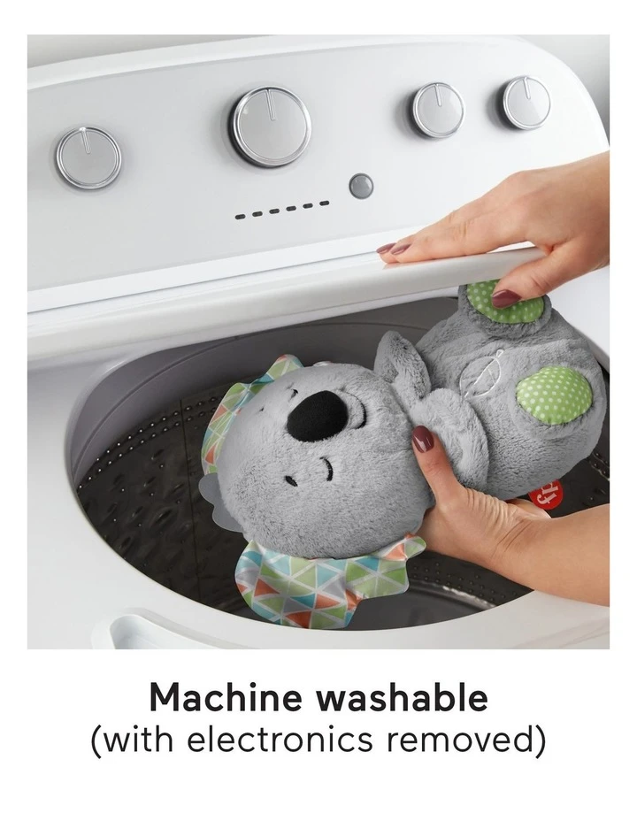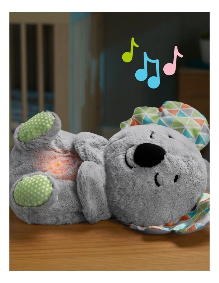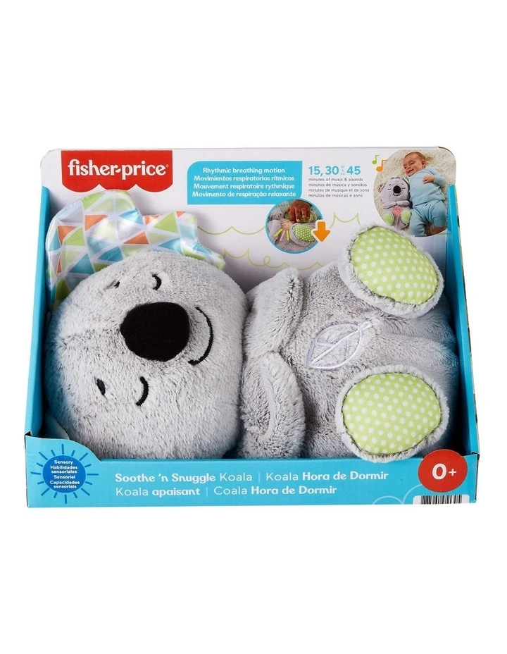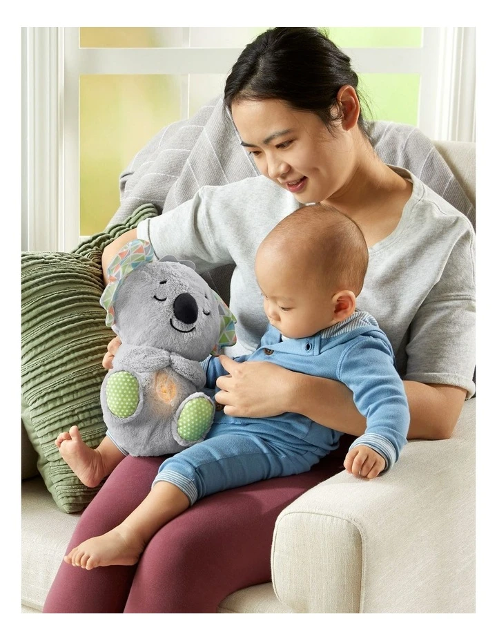 Baby can settle in for a cozy cuddle session with the Soothe n Snuggle Koala from Fisher-Price. This snuggly musical plush toy has a soft, light-up belly that moves up and down in a soothing rhythmic motion, just like its breathing. Personalise the soothing with customisable timers, music or nature sounds, and multi-colour lights. This plush infant soother is machine washable and features a variety of textures for little hands to explore.