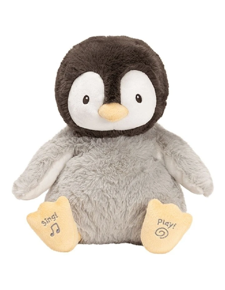 This adorable little Penguin is the perfect fluffy friend for interactive play! Made from GUND’s signature super-soft huggable plush in a grey colour, with black head and cute yellow flippers and nose, this penguin chick plays an interactive kissing game and sings a special song about hugs and kisses to the familiar tune of Frere Jacques.