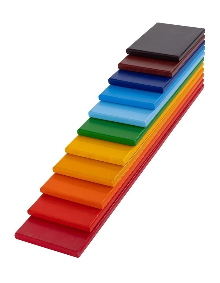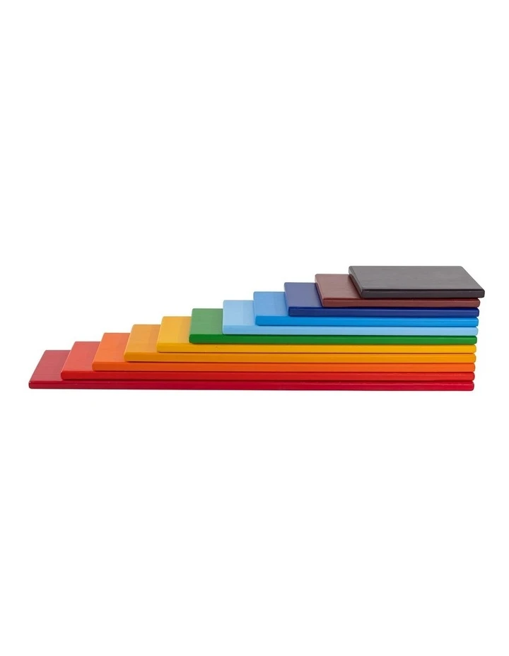 Rainbow Wooden Planks are a great open ended play toy for your child. These Wooden Planks are a fun creative puzzle to be played with on the floor. They can also be used in combination with our Wooden Rainbow, Natural Semi-Circles & Balls or other building blocks for new construction projects. Rainbow Wooden Planks are a great addition to use with our other open ended play toys to enhance the building possibilities! These versatile planks can be stacked and balanced in creative ways and offer endless opportunities for play. They are ideal for imaginative play, providing your child with a variety of learning experiences and hours of fun. The Rainbow Wooden Planks can help your little one to learn about colours, shapes and size. Playing with these Wooden Planks also helps develop your child?s coordination and balancing skills. Stacking toys also help to develop fine motor skills in your child. There are so many ways to use these Rainbow Wooden Planks your child can enjoy playing over and over again. Made from high quality bass wood, the Rainbow Wooden Planks uses non-toxic water-based paint so you can be sure about it being safe for kids. The Rainbow Wooden Planks includes 11 Colourful Planks of various sizes. Dimensions: Width 7cm x 0.8cm Thickness Various Lengths – Smallest Plank is 10cm, Largest Plank is 37cm