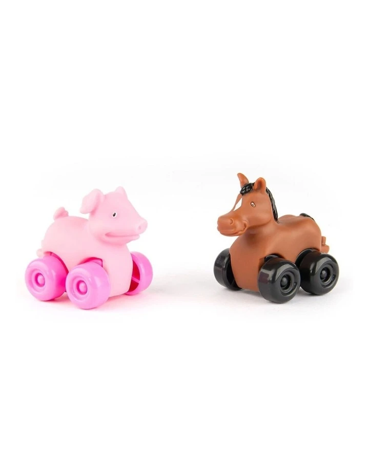 This farm toy set includes a horse and pig on wheels who love going for a roll too. There’s a barn for the animals to park in and fencing to help keep them safely inside.