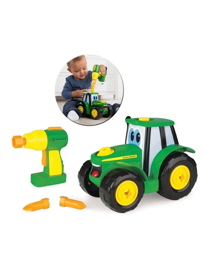 This 16-piece set includes a battery powered drill to take apart and build Johnny Tractor back together again.