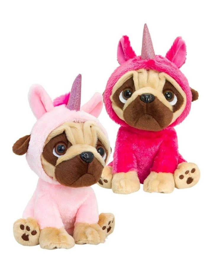 Pugsthe number 1 puppies you want to hug. Full of character they are simplyadorable! Featuring unicorn onesie equipped with a removable hood, colourful sparkle accents and magical unicorn horn, let Pugsley Unicorn bring abit of sparkle magic into your life.