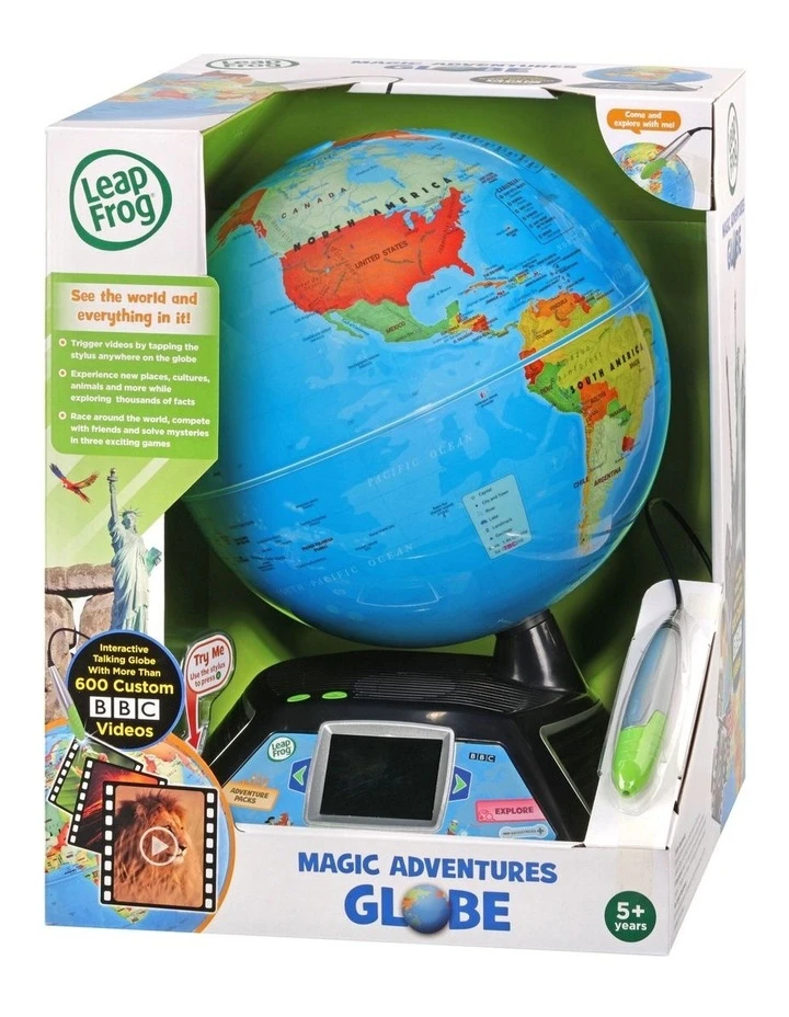 Young explorers can travel the world and see everything in it with the Magic Adventures Globe. Using the stylus, children can tap on the 10" interactive learning globe and experience new places, languages, cultures, animals, geography, habitats and more through high-quality BBC videos. Featuring a 2.7" integrated video screen, animations and live-action videos fully immerse kids in the curriculum to provide a better understanding of the world through more than 5 hours of videos. They can also play three interactive games called Around the World, Quiz Show and Where in the World to explore the globe, challenge a friend and solve mysteries.