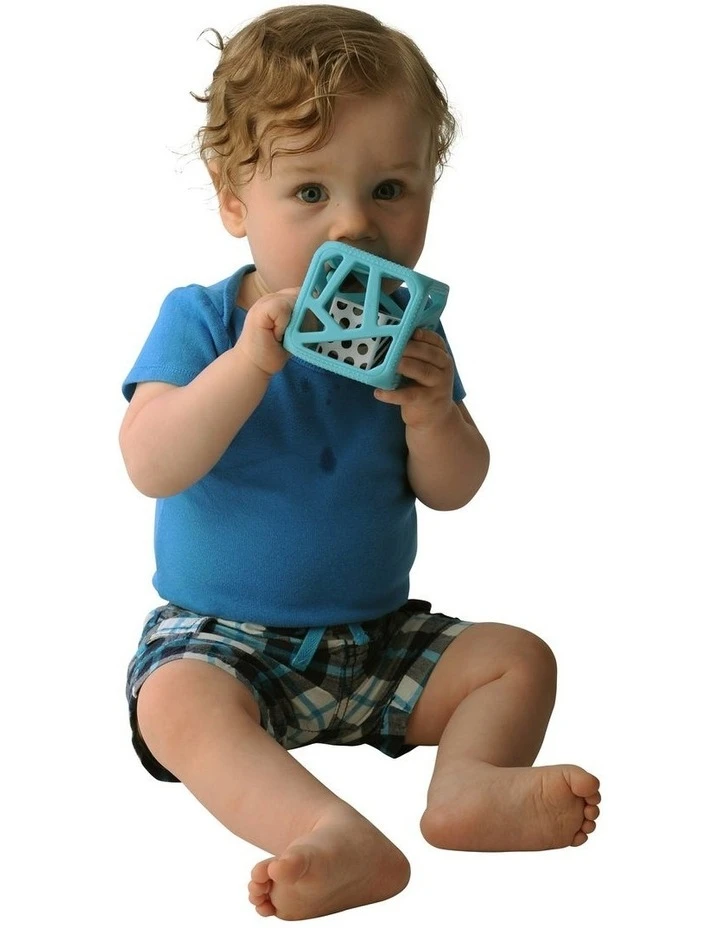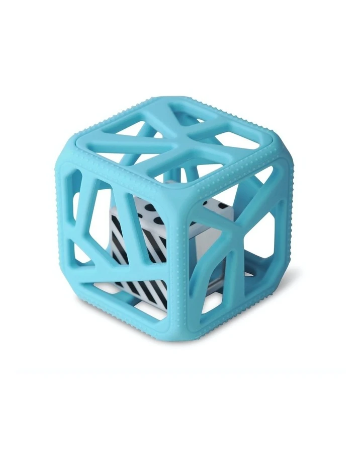 The Malarkey Kids Chew Cube is the mom-created modern rattle and teether. It provides four-way sensory stimulation, including soft, textured teething edges for tender gums; large flexible holes to help baby with gripping skills plus a black and white patterned rattle with mirrors to provide stimulation for baby’s ears and eyes.