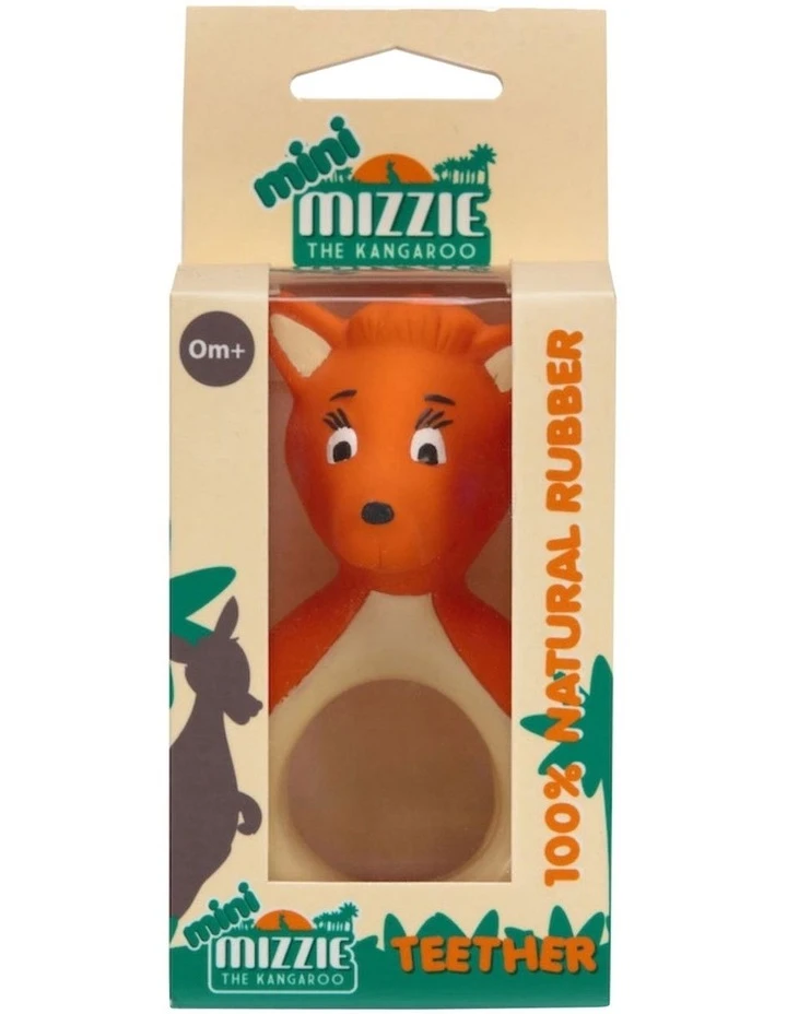 A mini ‘on-the-go’ of Australia’s original Natural Teething Toy – Mizzie The Kangaroo, mini Mizzie is sure to ease bubbas little sore gums with her soft rubbery texture, naturally. Perfect for sensory development, mini Mizzie develops the senses of SIGHT, TOUCH, and SMELL – this little teether has NO HOLE and NO SQUEAK. mini Mizzie is perfect for travelling, for the pram, the car, or as your go-to at home too.