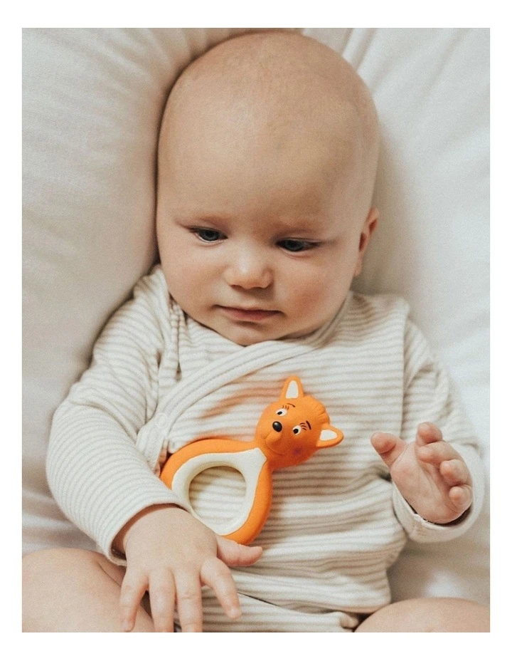 mini Mizzie Teething toy is made of 100% natural rubber and is safe for your little one to chew on, soothing those sore little gums, naturally!