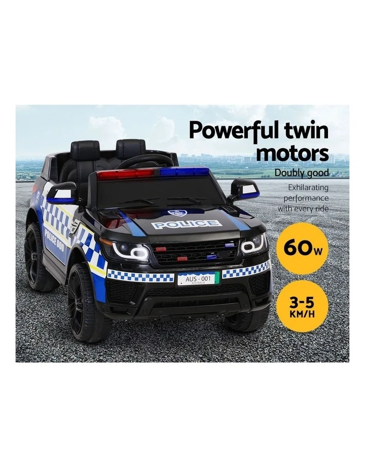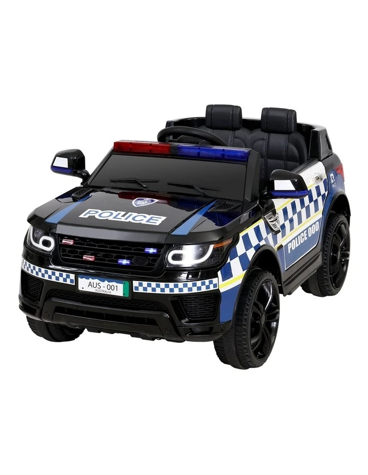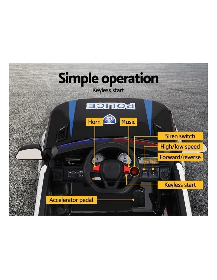 Our police ride on car is sure to impress your little driver with its looks, performance, and charisma. It boasts an impressive and distinctive exterior design and a solid build. It has powerful twin motors for exhilarating performance and thrilling rides, premium slip-resistant tyres, a steering wheel for a smooth touch and easy control, spacious seat with a safety belt for safety and comfort. Plus, it has stylish working doors with a safety lock and a functional dashboard for in-car entertainment. Other functions include horn, music, siren switch, accelerator pedal, high/low speed, keyless start, and forward/reverse switch for a real-like driving experience. Furthermore, the gradual acceleration and deceleration prevents sudden jerks or stops. The remote-control function and EN71 Standard Safety of Toys certification ensure the safety of the child.