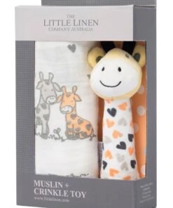 The Little Linen Company Orange Giraffe Muslin Wrap & Crinkle Toy