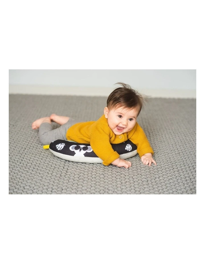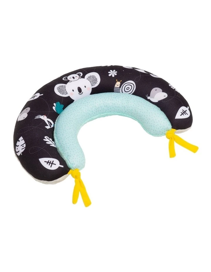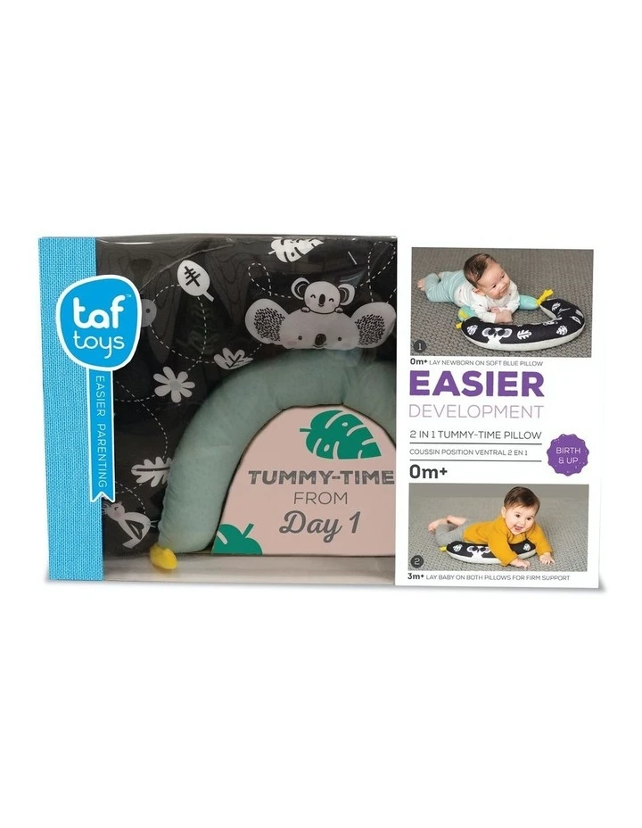 A unique ergonomic design of two pillows for 2 developmental stages that supports baby’s chest for extended tummy time practice. The uniquely designed pillows help baby practice raising his head and neck and enhances his motor skills development.