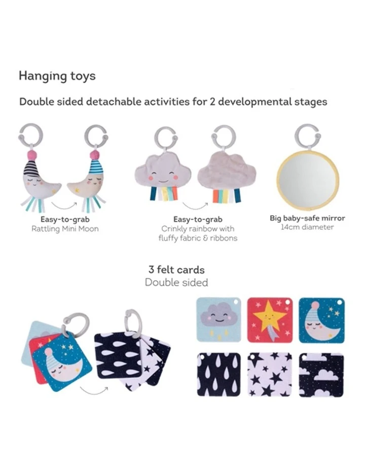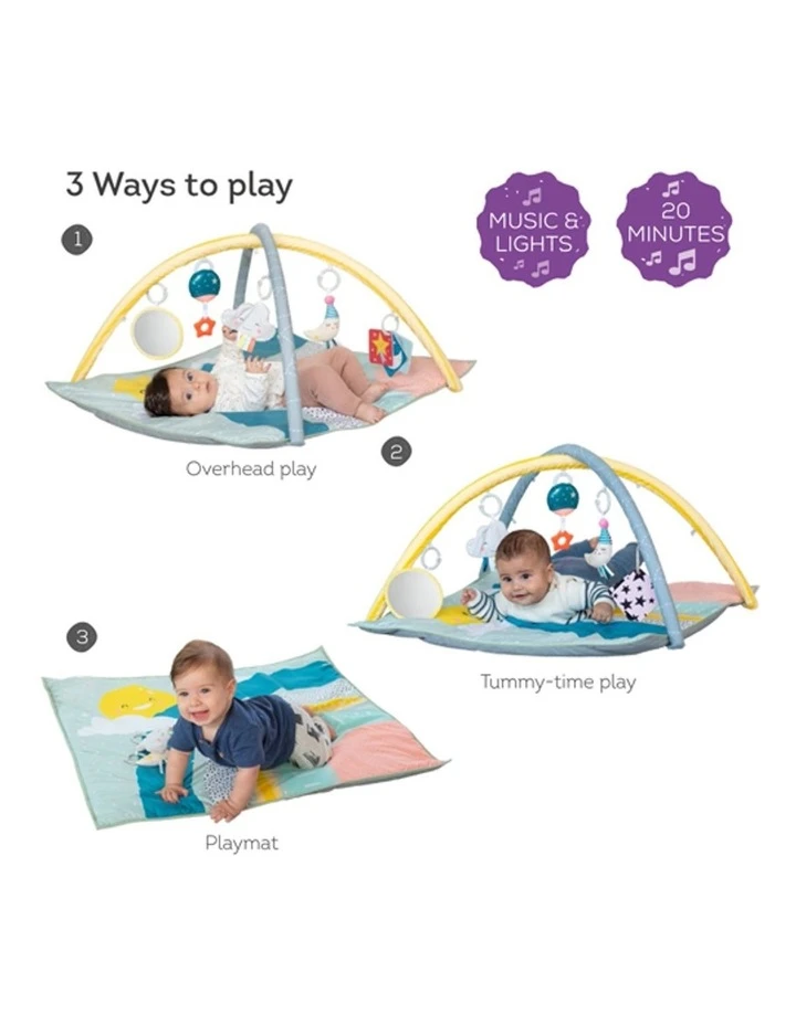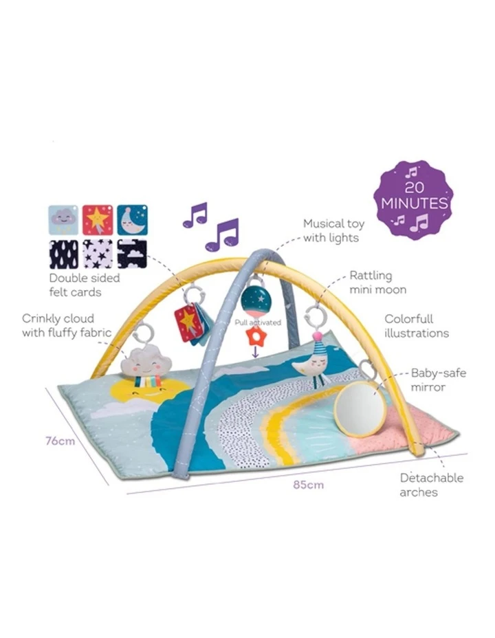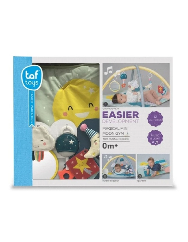 The Magical Mini Moon Gym is a spacious baby gym designed for babys ultimate comfort. The gym includes soft arches, fun activity toys and a musical toy with lights. The gym has been designed to encourage babys senses development, fine and gross motor skills and eye-hand coordination.