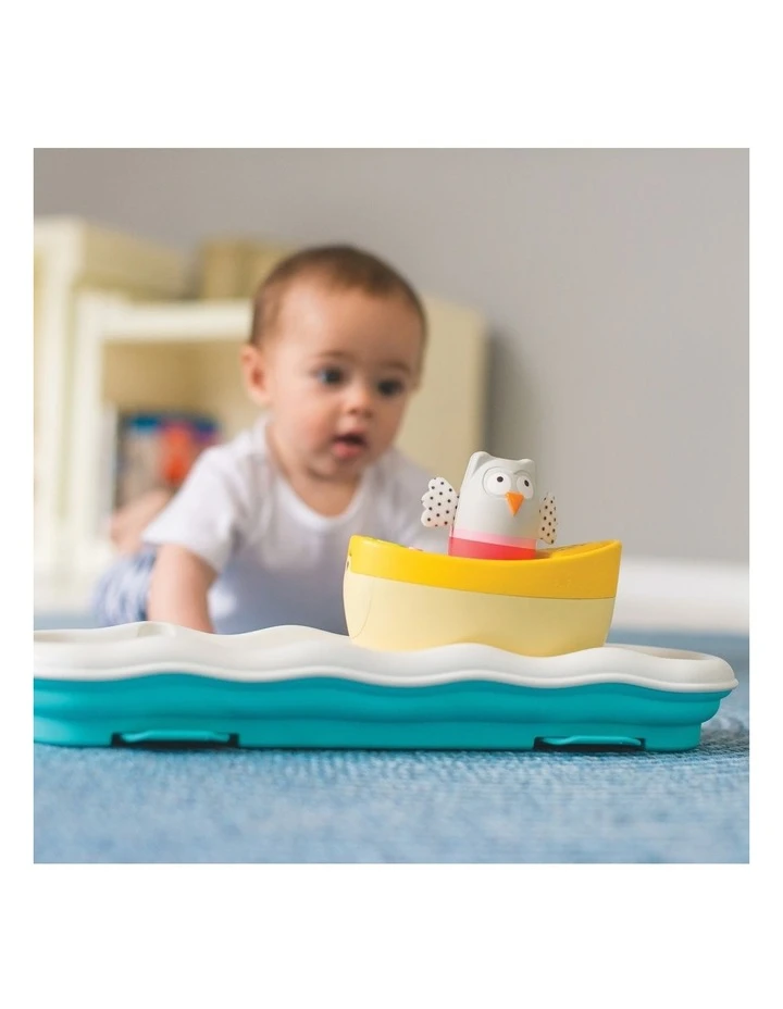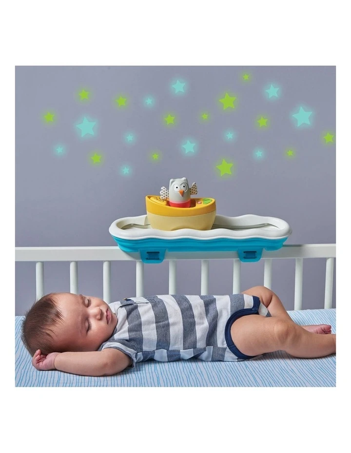 Musical toy to cater for 4 different uses and developmental stages. It can be used as a changing table entertainer, crib soother, tummy-time trainer and as a crawling toy. Features include: "Soothing mode" with soothing melody, nature sounds and water stream sound. "Playtime mode" with playful melodies. 3 X AAA batteries (not included).