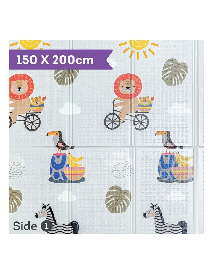 The Savannah Foam Play Mat is a high quality, super-sized waterproof, ultra-soft baby-safe reversible foam play mat. It features x2 designs including a colourful baby-friendly pattern, and a modern dcor pattern, so it easily adapts to living room or play room. It is simple to fold up and is convenient to transport and store. Measurements: 150x200cm