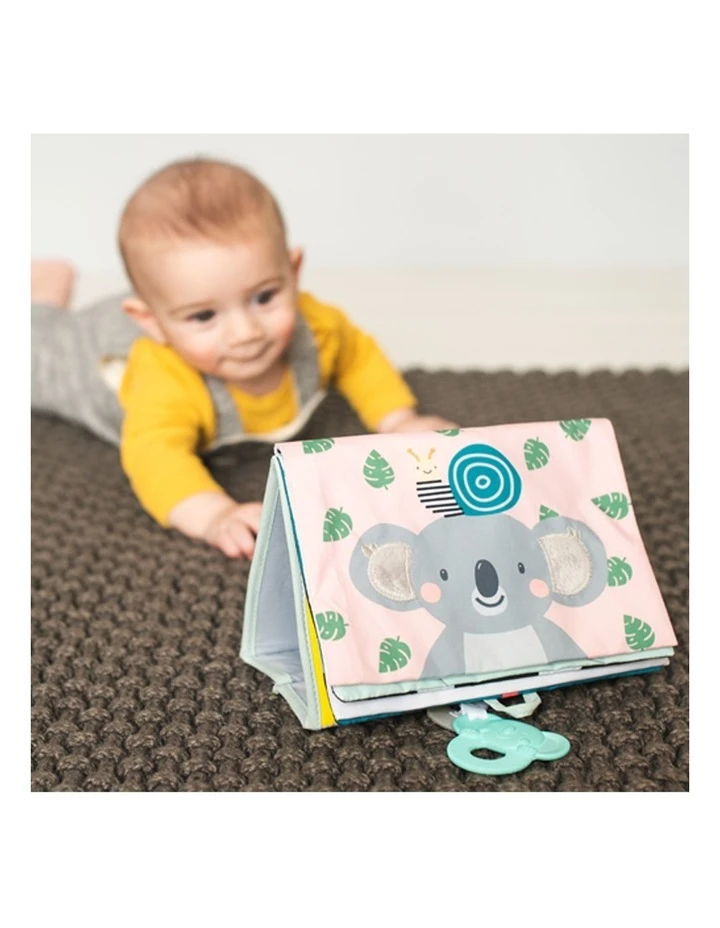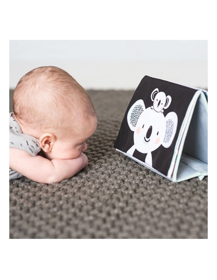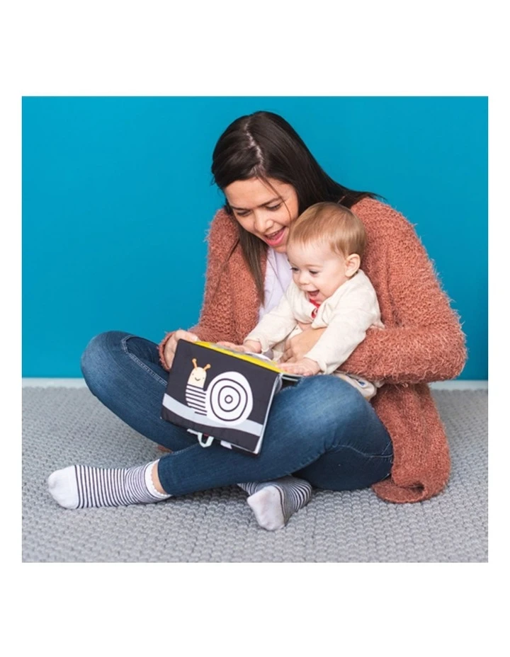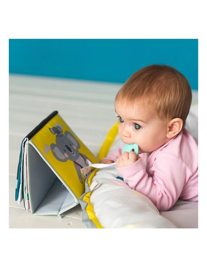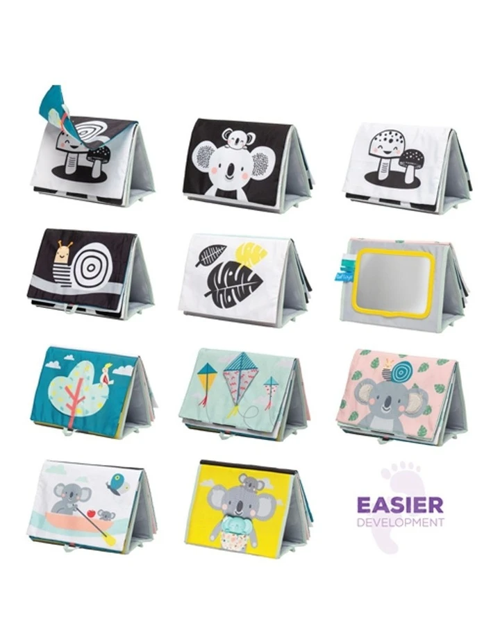 A double sides baby book for two developmental stages with lovely illustrations and multi sensory textures along with fun activities for baby. Uses flip and play concept with standing feature to encourage tummy time