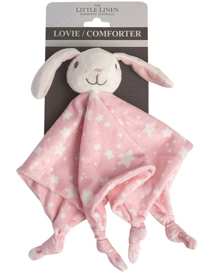 The Little Linen Company beautiful plush character Lovie (lovey), Comforter, Nunu, Doudou are great companions for your little one no matter what you call them! (expert tip is always making sure you have extra for when in the washed or misplaced)