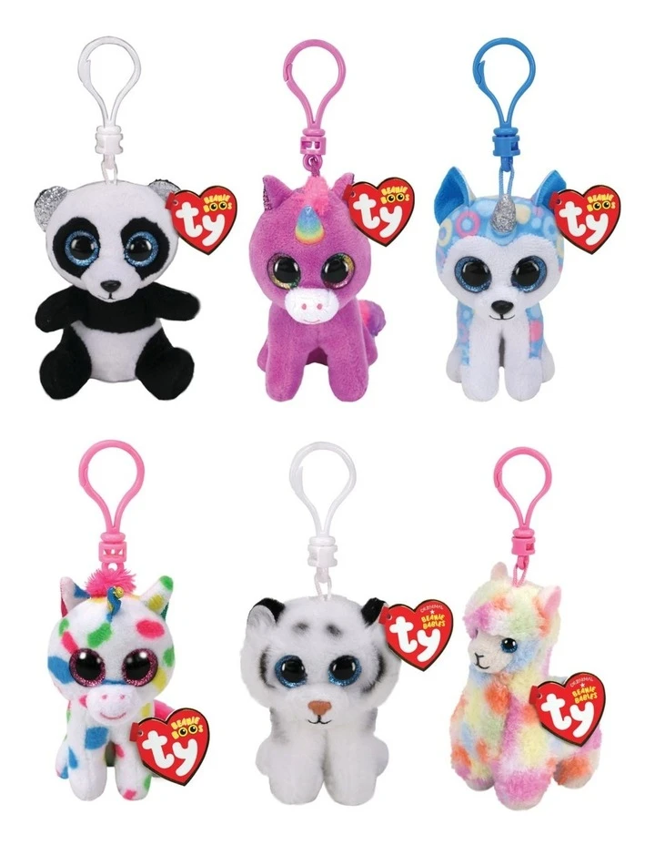 Carry these clips with you wherever you go! Ty Beanie Boos are the cutest collectible plush friends in the world. From Unicorns to puppies and cheeky raccoons, there is a Beanie Boo friend for everyone. With ever changing designs, which friend will you get? Will it be Kiki the Cat the fashion cat who knows how to accessorize all types!? Or maybe Slush the Husky the happy little pup who just wants to know where is all the soft white snow!?